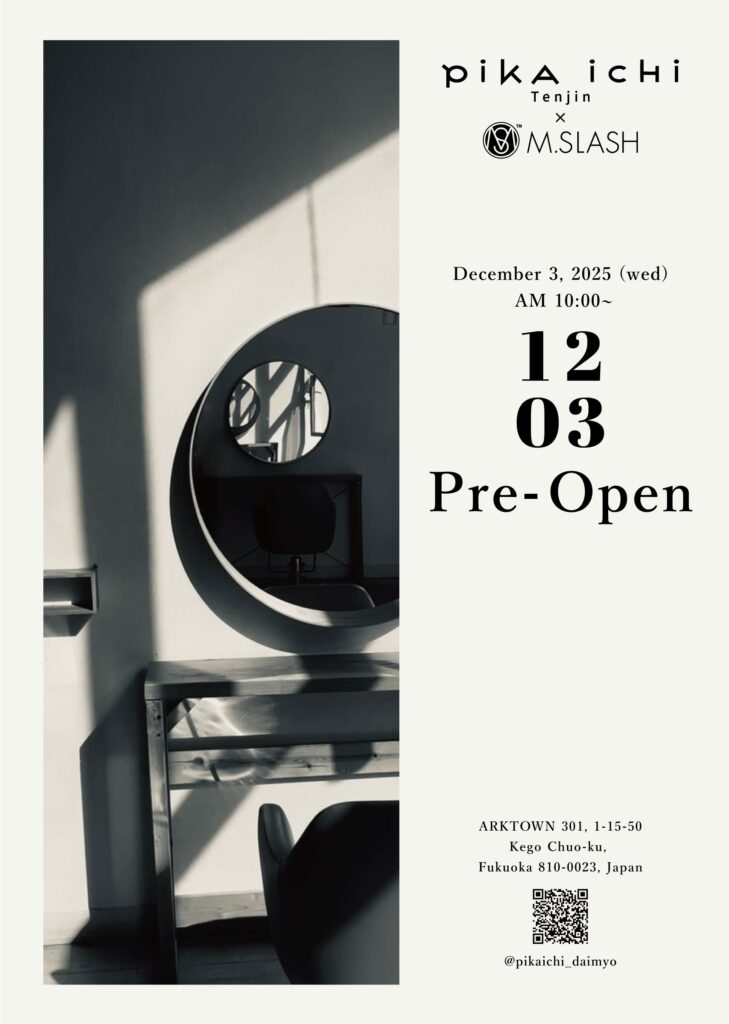 2025年12月3日(水)福岡・天神警固に【pikAicHi tenjin × M.SLASH】とコラボサロンとしてPre-Openいたしました。