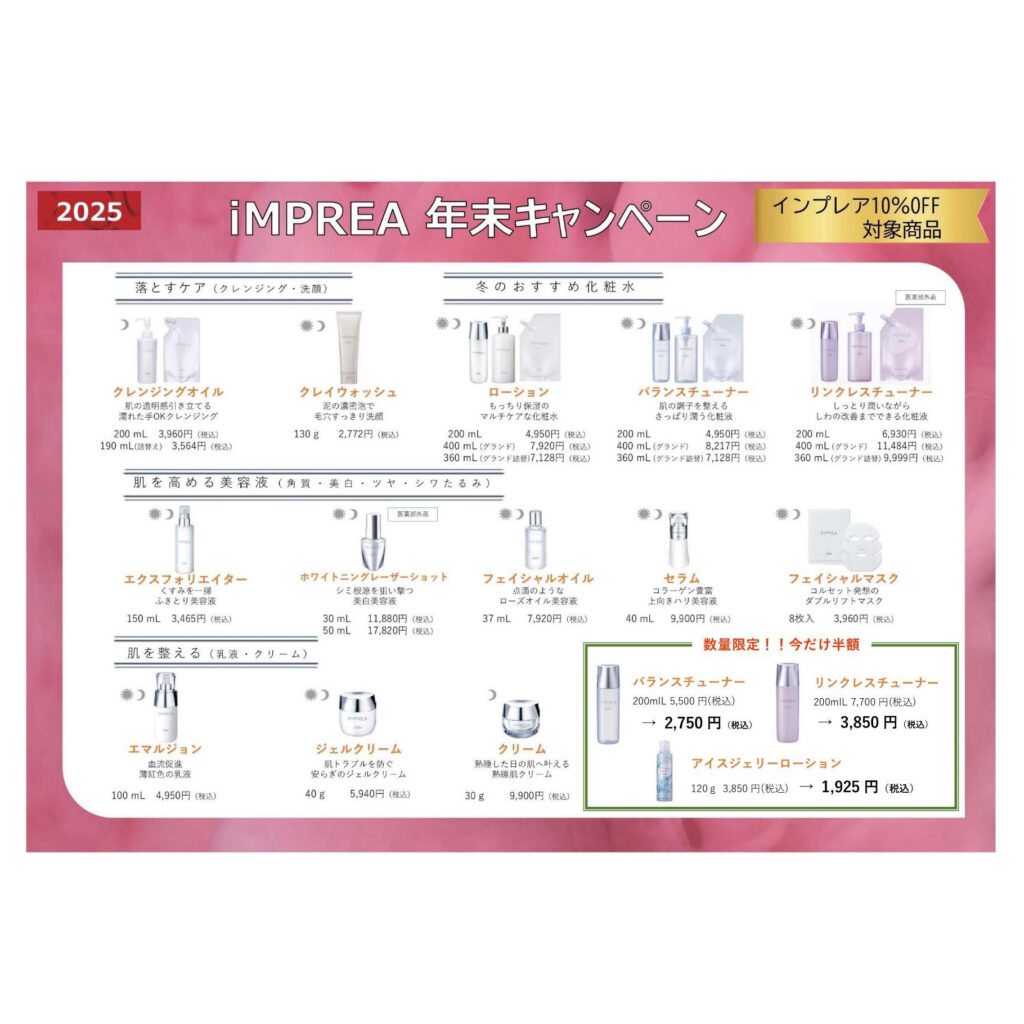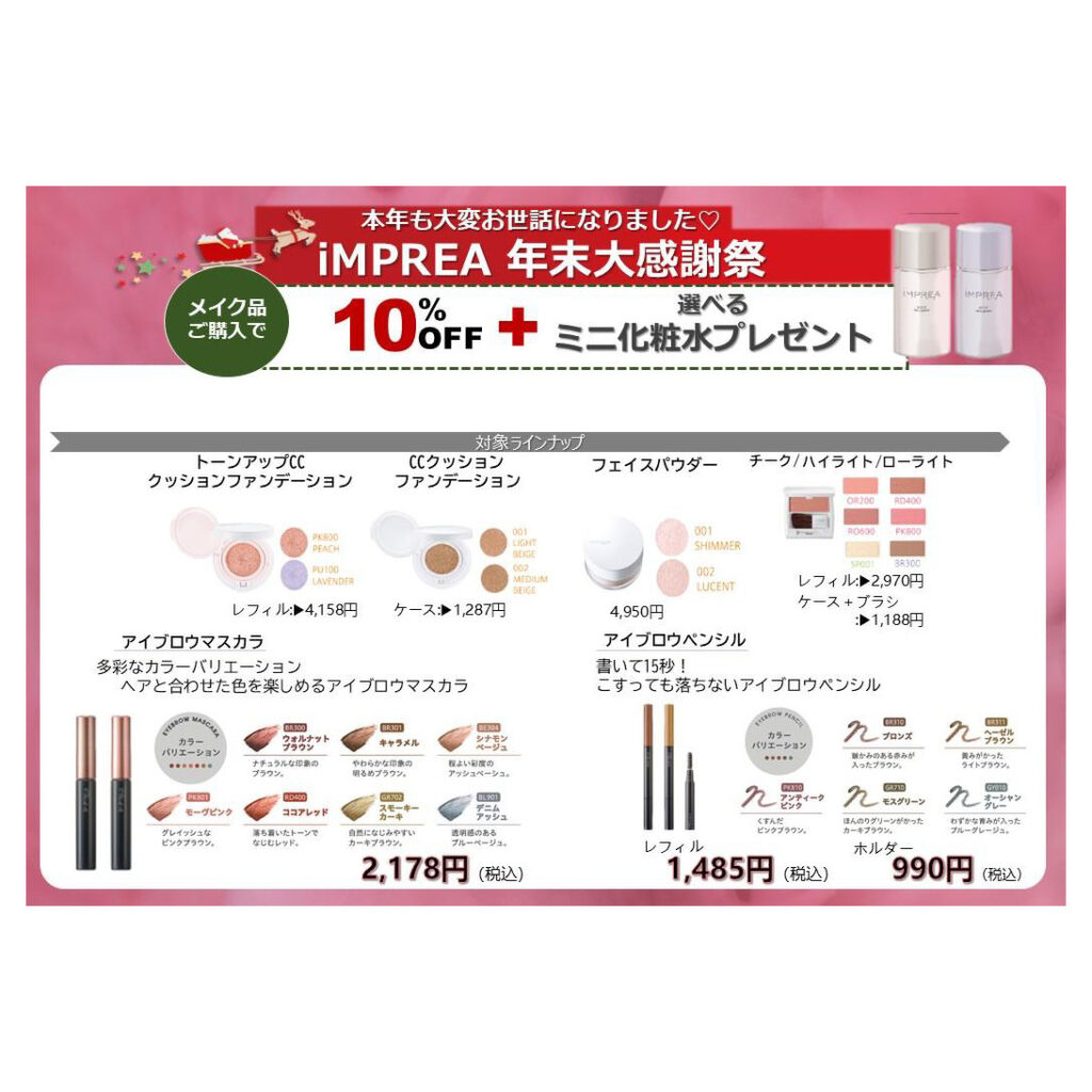 ★iMPREA スキンケア・メイク用品10%OFF※対象商品限定 数量限定で半額の商品もご用意しております!!